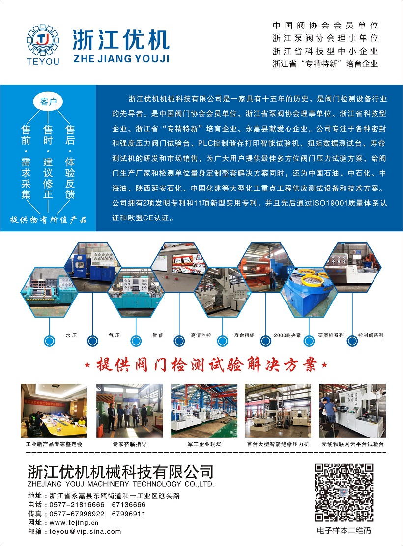 浙江優(yōu)機機械科技有限公司憑借研發(fā)投產(chǎn)的智能集成密封液壓機,成功入榜浙江省先進制造業(yè)首臺套企業(yè)名單,浙江優(yōu)機機械科技有限公司多個產(chǎn)品通過國家閥門(浙江)檢測中心檢測,相關(guān)技術(shù)經(jīng)浙江省省級工業(yè)新產(chǎn)品新技術(shù)鑒定,擁有2項發(fā)明專利和11項新型實用專利,是浙江省泵閥協(xié)會理事單位、浙江省“專精特新”培育企業(yè)、浙江省專利示范企業(yè)、浙江省科技創(chuàng)新型企業(yè)、溫州市科技創(chuàng)新企業(yè)、永嘉縣百星企業(yè)、永嘉縣愛心企業(yè)、中國石油準(zhǔn)入供應(yīng)單位、中國寶豐能源準(zhǔn)入供應(yīng)單位、山東核電設(shè)備有限公司合格供應(yīng)商。